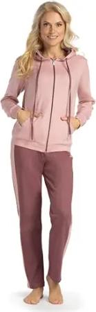 Damen Pyjama Freizeitanzug Hausanzug Homewear Suit Jogginganzug Pyjama Baumwolle Reißverschluß DW100 Bordo 40/42