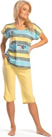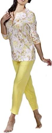 Damen Pyjama Schlafanzug Baumwolle DF261 (40/42, gelb)