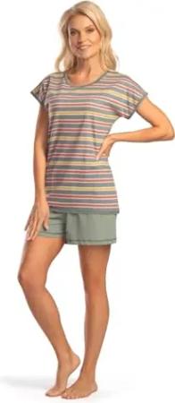 Damen Shorty Pyjama Schlafanzug aus atmungsaktiver und hautsymphatischer 100% Baumwolle-Jersey Qualität. Modell DF228Sh (DE/NL/SE/PL, Numerisch, 42, 44, Regular, Regular, Olive)