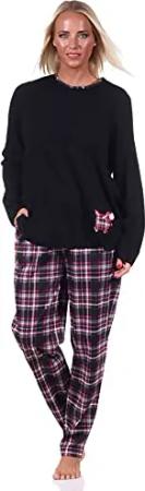 Damen Pyjama lang mit Karohose und süssen Tiermotiv - auch in Übergrössen - 212 201 90 820, Farbe:schwarz, Größe:36-38