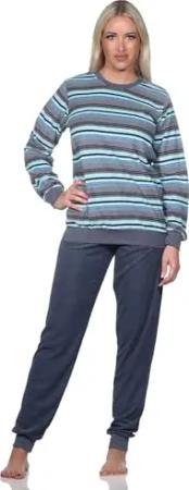 Damen Frottee Schlafanzug in edler Streifenoptik, Farbe:blau, Größe:44-46