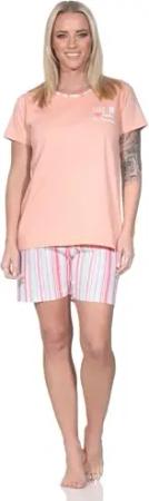Damen Shorty Pyjama Kurzarm in Blockstreifenoptik - auch in Übergrössen, Farbe:apricot, Größe:44-46