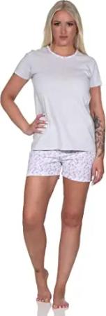 Floraler Damen Shorty Schlafanzug, Pyjama mit kurzen Shorts und Ringeln, Farbe:grau, Größe:44-46