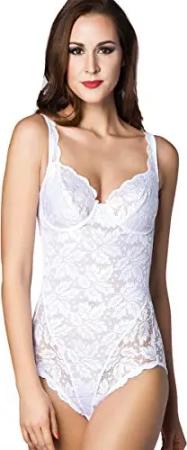 Dessous Damen Fantasy Body mit Spitze Damen Bügelbody Damen Body mit Bügel Shape Body Unterwäsche in Weiß Größe 80B