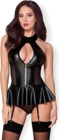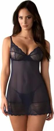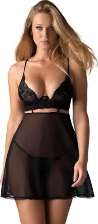 Damen Women's Encaje Peluche Con Correas Lace Teddy with Straps Unterwäsche, Black, M, OB-8747, Schwarz