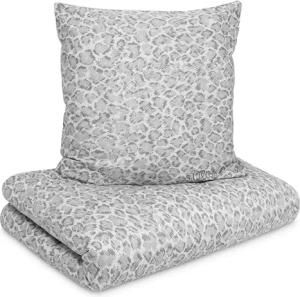 Leo Bettwäsche 135x200 cm - 100% Baumwolle, Reißverschluss, anschmiegsam, weich & waschbar, Mako Satinbettwäsche grau modern Leoparden Muster