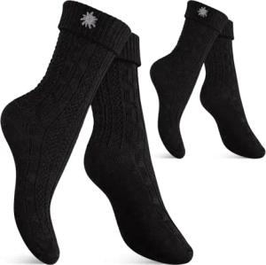 Damen und Herren Trachten Kniestrümpfe (2 Paar) Oktoberfest Strümpfe mit Umschlag - Schwarz 35-38