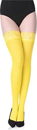 Damen halterlose Mikrofaser 40 DEN Strümpfe mit Spitze MS 791 (Canarinio-791, XL-XXL (46-50))