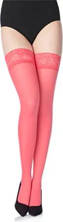 Damen halterlose Mikrofaser 40 DEN Strümpfe mit Spitze MS 791 (Korallenrot-791, XS-S (32-38))
