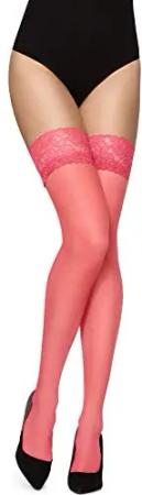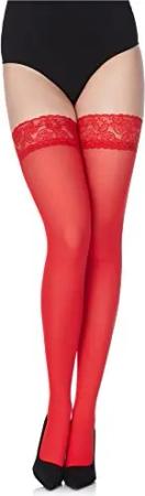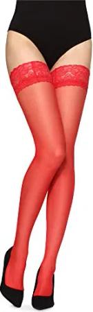 Damen halterlose Mikrofaser 40 DEN Strümpfe mit Spitze MSSSJ01 EU XS-S (Rot, 1/2 (32-38))