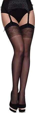 Damen transparent Strapsstrümpfe MS 226 15 DEN (Schwarz, M-L (40-44))