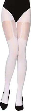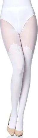Damen Strumpfhose mit Muster Overknee Optik MS 389 60 DEN(Weiß, L (40-44))