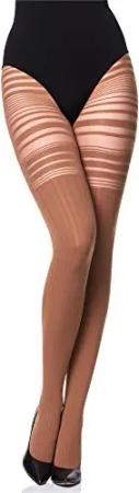 Damen Overknee Strumpfhose mit Muster Strümpfe Optik MSSST001 (Avana, XS-S)