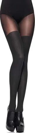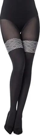 Damen Strumpfhose mit Muster Overknee Optik MS 389 60 DEN(Graphite, M (36-40))