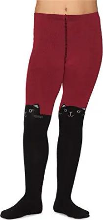 Damen Strumpfhose Muster Overknee Optik mit Schleifen MSSST003 (RotSchwarz, L)