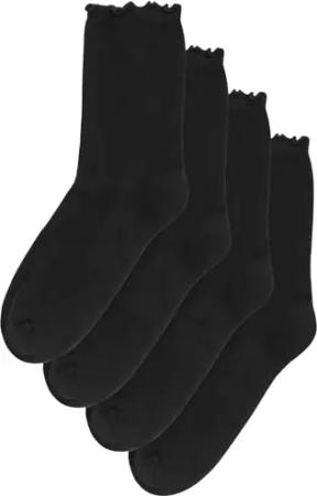 Damen Söckchen mit gepolsterter Sohle und Rüschensaum, 4er-Pack Schwarz one size