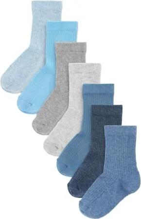 Jungen Feinrippsocken mit hohem Baumwollanteil, 7er-Pack Blau/Marineblau 19-22