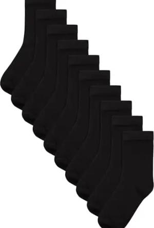 Jungen Standard 10 x Socken mit hohem Baumwollanteil Black with Contrast Heel and Toe 31-36