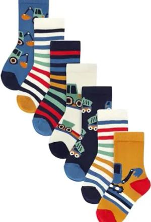 Jungen Socken mit hohem Baumwollanteil, 7er-Pack Blue Stripes/Transport 16-18.5