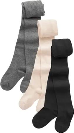 Mädchen Strumpfhosen mit hohem Baumwollanteil, 3er-Pack Black/Oatmeal/Charcoal 122-128