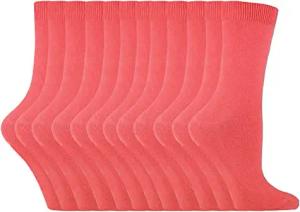 12er Pack Damen Baumwolle Bunt Socken | Sock Snob | Dünn Bequem Crew Uni Farbig Socken für Damen (37-42, Koralle)