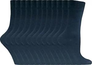 12er Pack Damen Baumwolle Bunt Socken | Sock Snob | Dünn Bequem Crew Uni Farbig Socken für Damen (37-42, Marine)