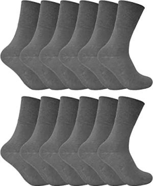 12er Pack Damen Thermo Diabetikersocken Ohne Gummi Extra Weit Thermosocken Für Winter (37-42, Grau)
