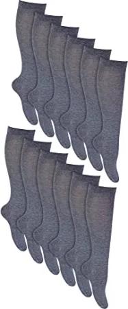 12er Pack Mädchen Baumwolle Kniestrümpfe Atmungsaktiv Lange Schulsocken in Grau, Schwarz, Weiß, Blau (11-14 Jahre, Grau)