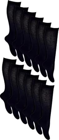 12er Pack Mädchen Baumwolle Kniestrümpfe Atmungsaktiv Lange Schulsocken in Grau, Schwarz, Weiß, Blau (8-11 Jahre, Schwarz)