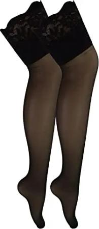3er Pack Damen Sexy Nylon Nahtstrümpfe Schwarz Vintage Stil Kniehohe Atmungsaktiv Strumpfhose Durchsichtig (36-42, Schwarz/Schwarz)