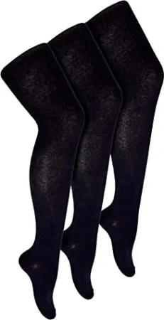 3er Pack Mädchen Baumwolle Strumpfhose für Schule Atmungsaktive Weiche Blickdichte Strumpfhose in Schwarz und Grau (9-10 Jahre, Marine)
