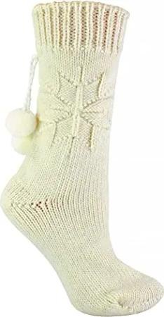 Damen Alpaka Wolle Socken mit Bommel | Gestrickt Socken | Wollsocken (37-42, Creme)