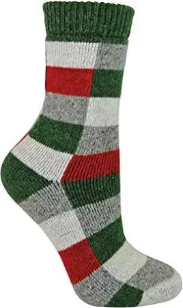 Damen Atmungsaktiv Seide Wolle Socken mit Bunt Kariert Muster (37/42, 15 Green/Red)