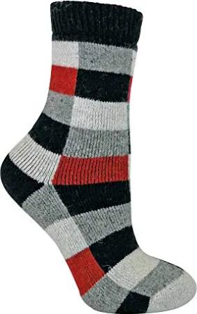 Damen Atmungsaktiv Seide Wolle Socken mit Bunt Kariert Muster (37/42, 16 Navy/Red)