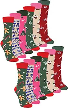 Damen Bunt Weihnachtssocken Atmungsaktiv Baumwolle Lustig Socken (37-42, 12 Pack)