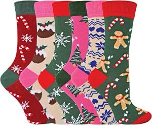 Damen Bunt Weihnachtssocken Atmungsaktiv Baumwolle Lustig Socken (37-42, 6 Pack)