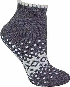 Damen Kurz Wollsocken Antirutsch Thermo Wolle Sneaker Socken mit ABS Rutschfest Noppen (37-42, Holzkohle)