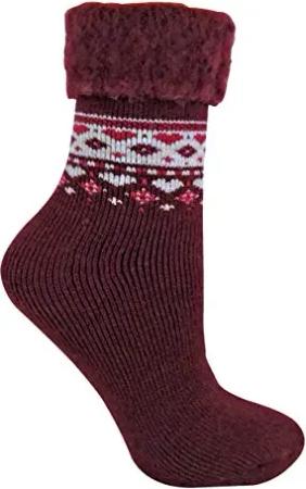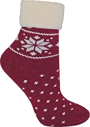 Damen Kuschelsocken mit Wolle Warm Thermo Bettsocken für Winter | Socken mit Norwegermuster (37-42, Rot)