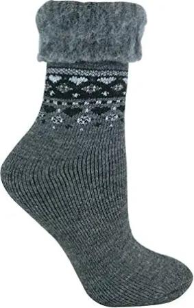 Damen Kuschelsocken mit Wolle Warm Thermo Bettsocken für Winter | Socken mit Norwegermuster (37-42, Grau)