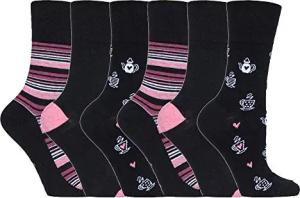 Gentle Grip - 6er Pack Damen Baumwolle Reine Bunt Muster Ohne Gummi Socken mit Design (37-42 EU, GG171 Kettle/Teacups)