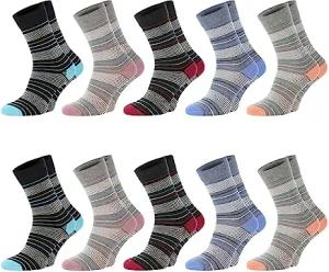 Chili Lifestyle Streifen Socken Damen, Weichbund ohne Gummidruck, recycelte Baumwolle, Ringelsocken, 10 Paar, schwarz grau jeansblau, 35-38 / 39-42