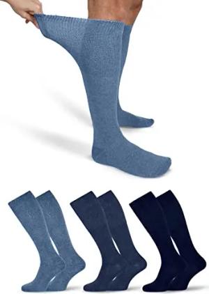 3x Kniestrumpf Unisex für Diabetiker geeignet und ohne drückenden Gummibund Blau Mix Gr. 43-46