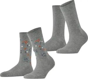 Damen Socken Flower Rib Multipack W So Baumwolle gemustert 2 Paar, Grau Light Grey 3400, 35-38