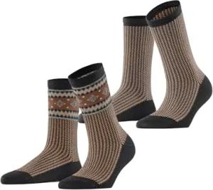 Damen Socken Scandi Multipack W So Baumwolle Wolle gemustert 2 Paar, Schwarz Black 3000, 35-38