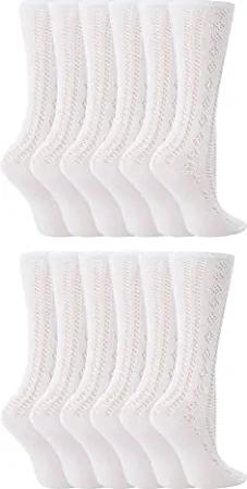 12er Pack Mädchen Weiß Baumwolle Socken | Sock Snob | Knie Lang Vintage Weiche Schule Stricksocken (11-14 Jahre, Weiß)