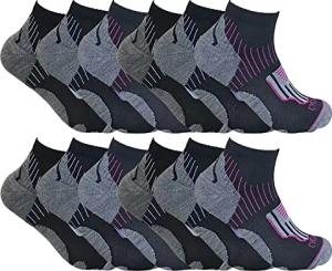 12er Pack Damen Kurz Fahrradsocken Atmungsaktive Anti-Blasen Schwarz Sports Socken (37-40, Schwarz)