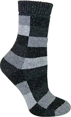 Damen Atmungsaktiv Seide Wolle Socken mit Bunt Kariert Muster (37/42, 17 Black/Grey)