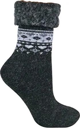 Damen Kuschelsocken mit Wolle Warm Thermo Bettsocken für Winter | Socken mit Norwegermuster (37-42, Grau)