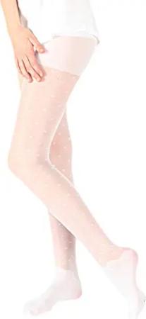 20 Den weiße Mädchen Strumpfhose mit Dots Punkten Print tattoo gemustert tights Lina 20 N1 Bianco(Weiß) 128-134