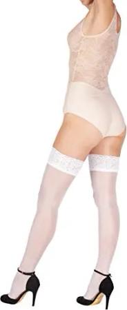 halterlose Strümpfe 20 Den Bianco XS/S Blumen Muster